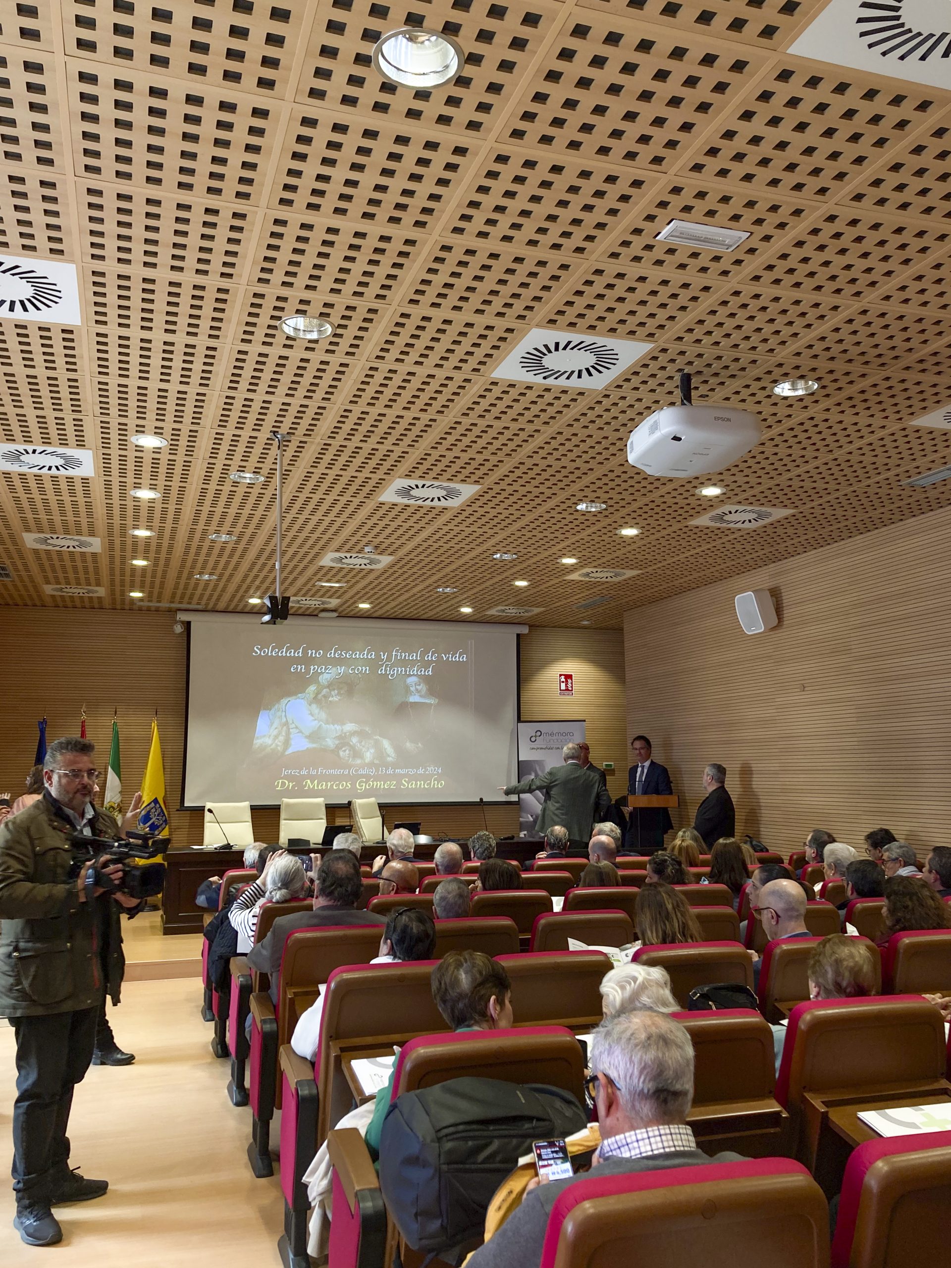 Dicho acto, comenzó alrededor de las doce de la mañana con las intervenciones de D. Manuel Arana, Director del INDESS de la Universidad de Cádiz, D. Augusto Miranda, Consejero delegado de la Fundación Mémora y Dña. Yessika Quintero, Delegada de Inclusión Social, Dependencia, Mayores y Familia por parte del ayuntamiento de Jerez de la Frontera.