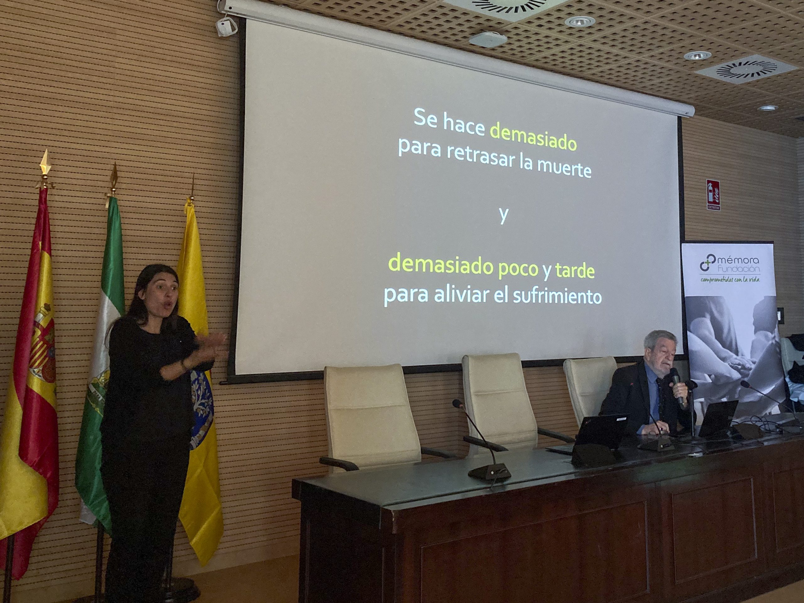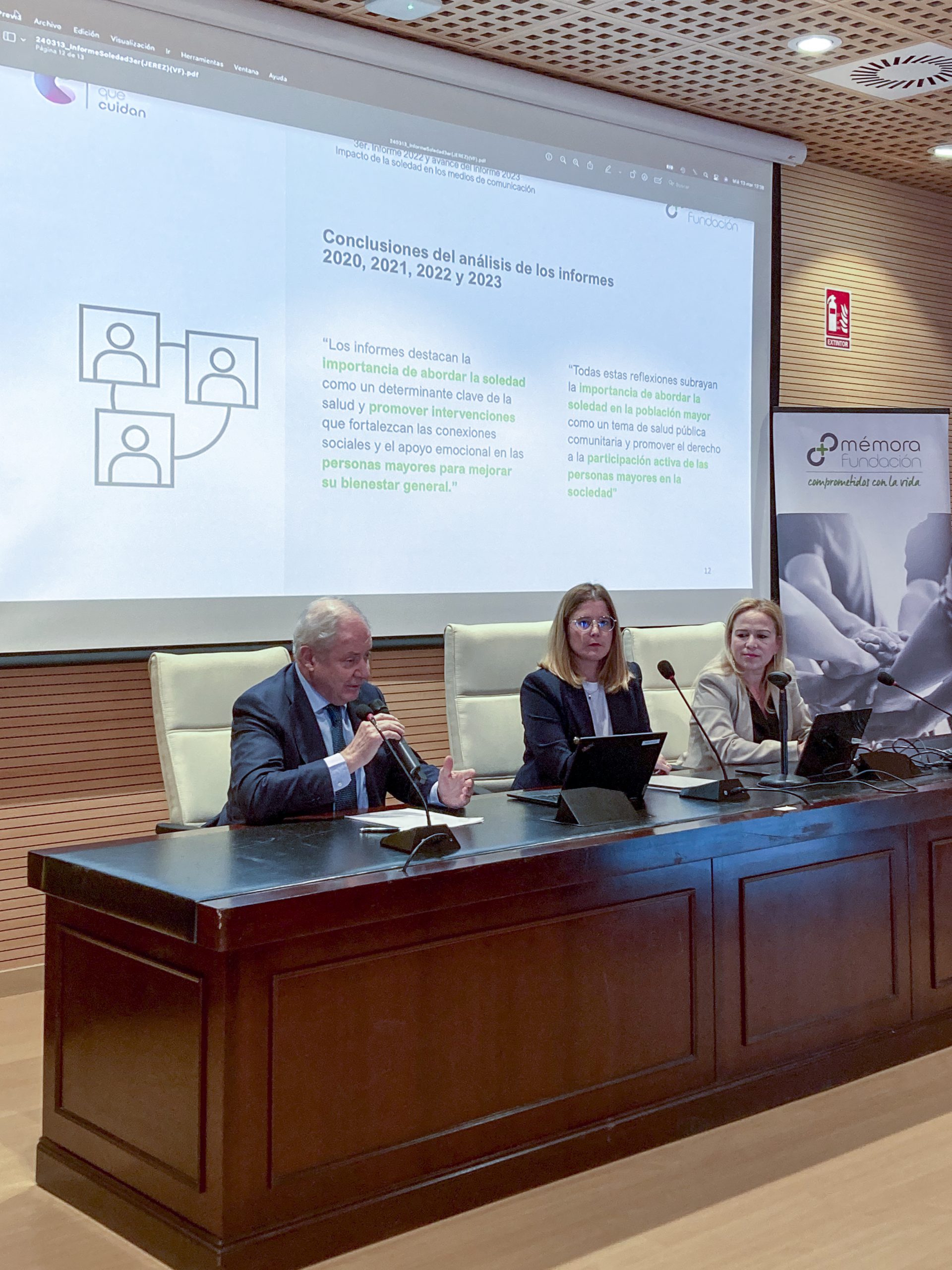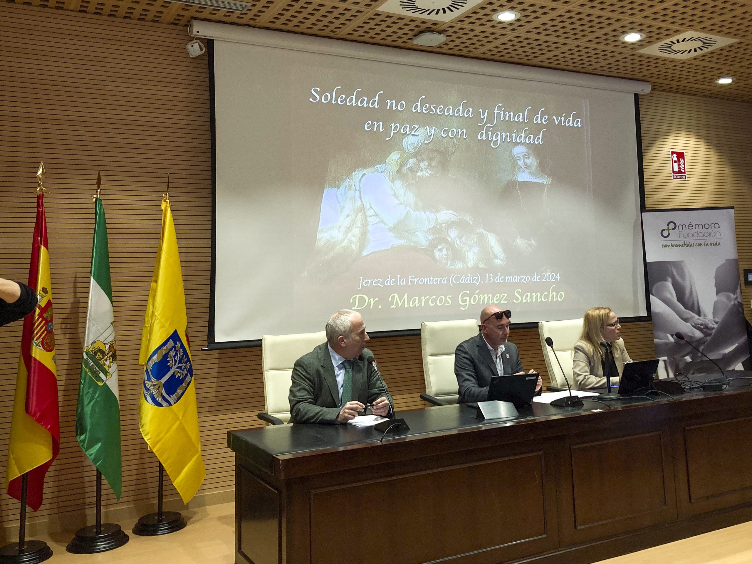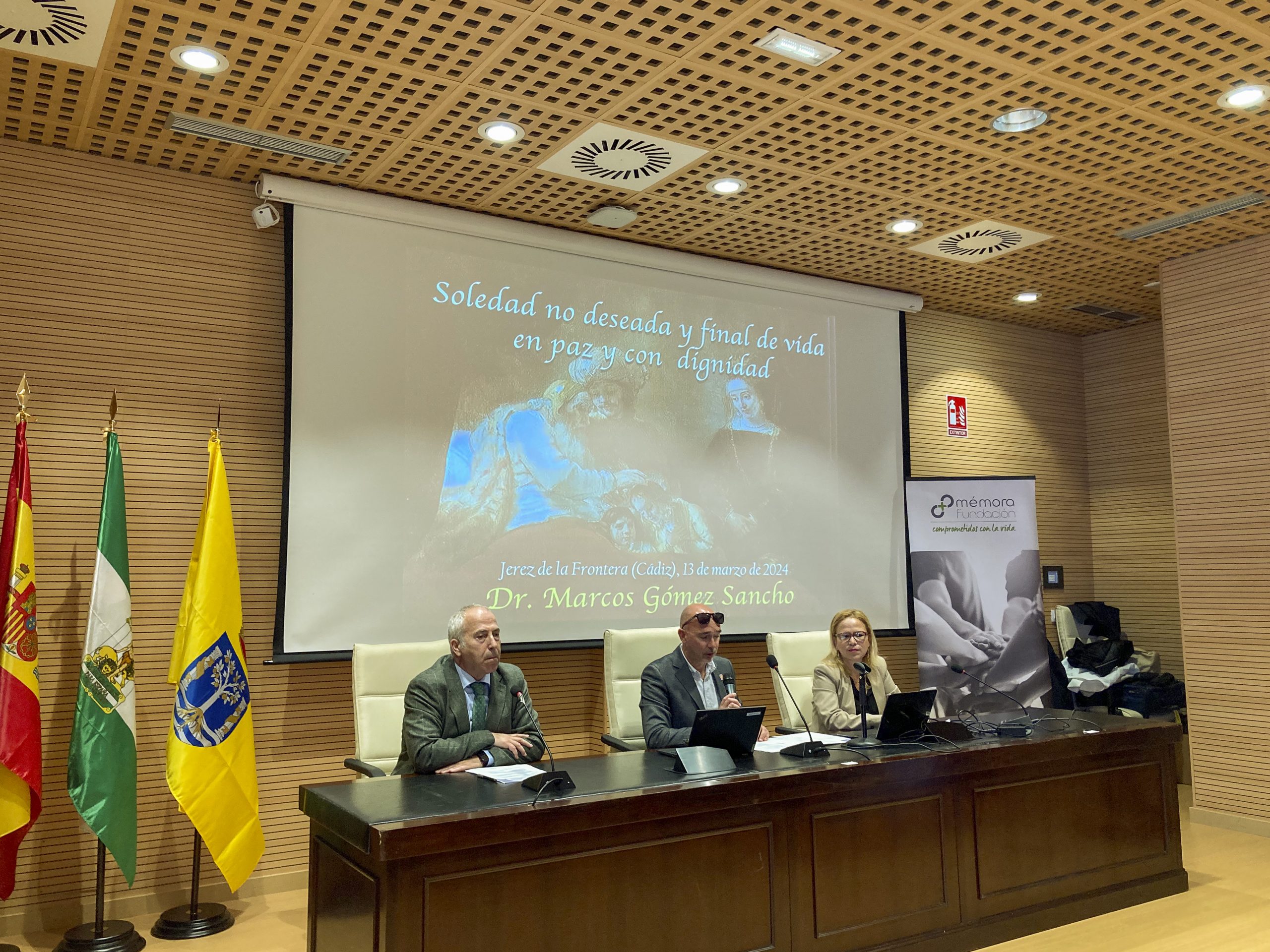 Para finalizar, intervinieron , Dña. María de los Ángeles Minguela, Directora de Acción Social y Solidaria del Vicerrectorado de Sostenibilidad y Cultura de la Universidad de Cádiz, D. Santiago de Torres, Presidente de la Fundación Mémora y Dña. Yessika Quintero, por parte del Ayuntamiento de Jerez de la Frontera para realizar las conclusiones y cierre de esta Primera Jornada en la que se comentó la importancia de los temas tratados por parte de los dos ponentes hablando principalmente de la pandemia invisible de la “soledad y la muerte” llegando a la conclusión por parte de la representante del Ayuntamiento de Jerez de la Frontera de llegar a un acuerdo con la asociación de personas mayores para cooperar juntos en esta causa.