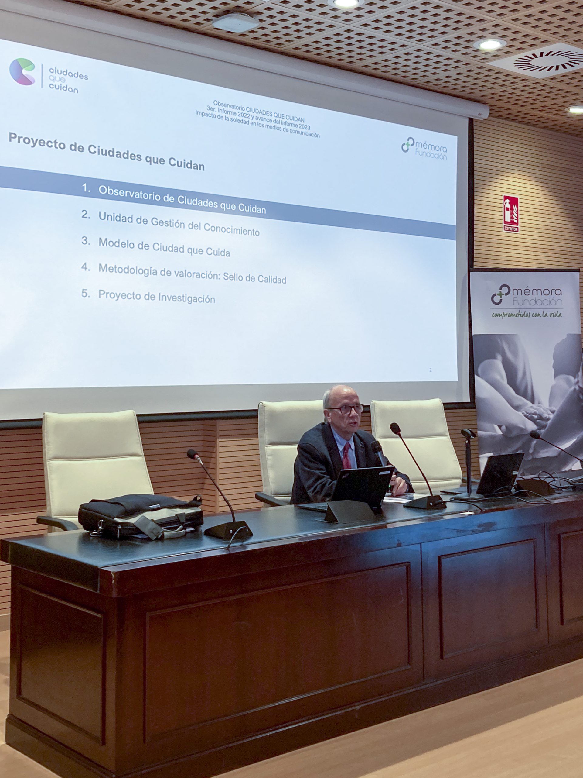 Posteriormente, comenzó la segunda conferencia con la presentación del tercer informe del Observatorio de Ciudades que Cuidan “Impacto de la soledad en los medios de comunicación” por parte de D. Joan Berenguer, director de la Fundación Mémora.